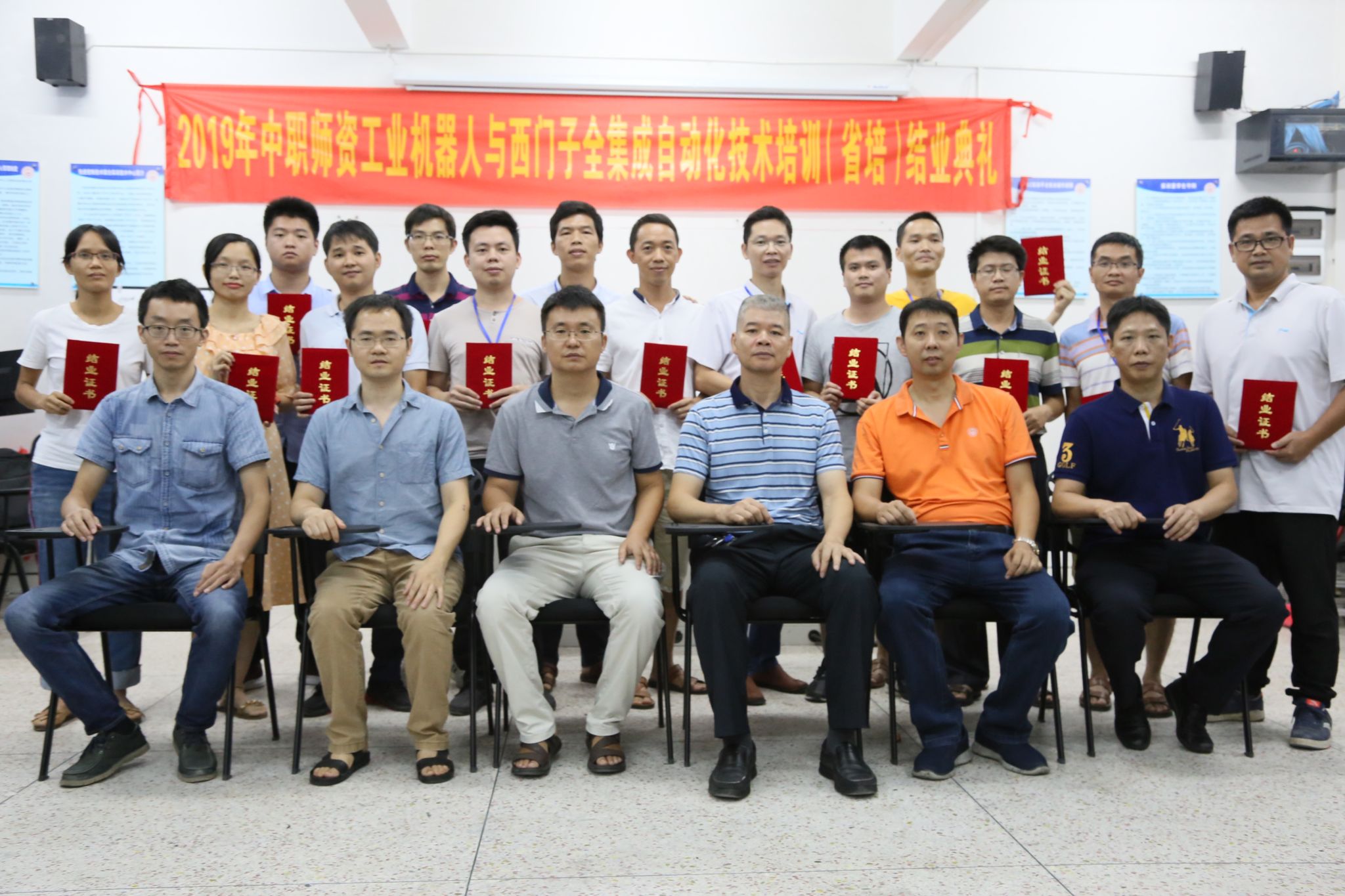 8月3日,2019年广东省中职师资“工业机器人与西门子全集成自动化技术”培训班在我院顺利开班,来自全省8所中等职业学校的骨干教师14人参加了本期培训,广东交通职业技术学院机电工程学院院长潘伟荣、工业机器人专业教师郝建豹、林子其、易焕银等出席了开班典礼。