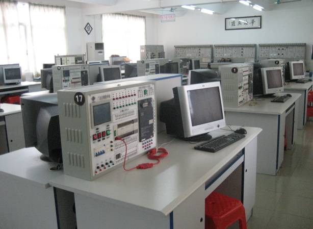 该室是我院与北京三维力控科技有限公司共同建设的实训室,主要是可编程序控制器(PLC)、变频器、触摸屏、力控组态等应用技术的现场教学与实训场所, 同时也是我院职业技能维修电工工种的高级工-技师-高级技师等级考证的训练及考核地点。