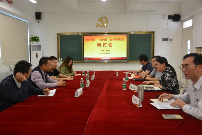 座谈会上,郑光永校长简要介绍学校情况,尤其是机电系的中德“双元制”办学情况,并表示学校希望与我校及创维公司开展多层次、跨专业等多方面的合作。潘伟荣院长介绍了机电学院专业建设、师资条件、中德智造班情况等。深圳市创维数字技术有限公司介绍了企业需求、合作形式等。三方表示就具体合作的内容、形式做进一步的商讨。