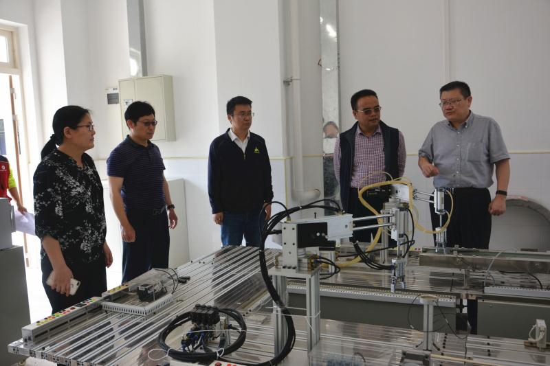 会后,在郑光永校长等陪同下参观了学校工业机器人等实训室。机电系李慧茹主任展示了本系教师开发的机电一体化工13个学习领域的教学工作页等,潘伟荣院长一行重点观摩了机电系16中德双元制班助理机电工程师第一部分考试。(文/ 图 郝建豹)