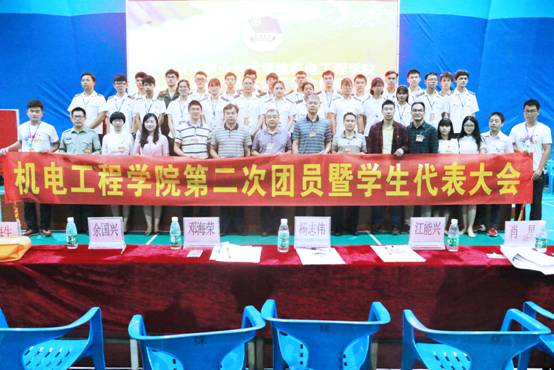 2017年10月14日下午14:30,机电工程学院第二届团员代表大会暨学生代表大会在花都校区文体中心胜利召开。学生工作处杨志伟处长、校团委余国兴书记、学生工作处肖星副处长、钟海生副处长、信息学院党总支江能兴书记、机电工程学院党总支邓海荣书记、学生工作处饶锦老师、聂文峰老师、海事学院分团委书记叶培发等领导和老师出席了本次大会。参加会议的有来自24个班级、5个专业代表团的156名团员代表和学生代表。