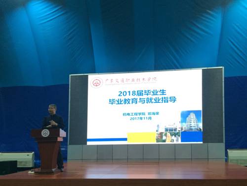 2017年11月2日下午,在学校2018届毕业生校园供需见面会(花都校区专场)即将召开之际,机电工程学院在文体中心举行了2018届毕业生毕业教育与就业指导专题教育活动。机电工程学院党总支邓海荣书记、宋春华副院长、王贵恩副院长、辅导员老师,以及560余名2018届毕业生参加了该专题教育活动。