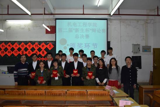由机电工程学院主办、分团委学生会承办的第二届“新生杯”辩论赛,自10月25日发出通知后,得到了师生们的广泛认同和积极参与,共有18支队伍90名同学报名参加了比赛,经过激烈的角逐,初赛、复赛、决赛。最后,机电一体化152班获得冠军,电气自动化152班获得亚军,机电一体化153班获得季军,由机电一体化152班林锦聪获得最佳辩手。