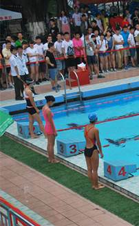 紧接着还进行了相关赛事的选拔,50米蛙泳,100米自由泳、仰泳、蝶泳……很多观赛同学被选拔赛的气氛所感染,都是在现场报名。
