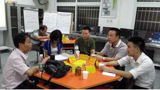 作为此次调研对象的中职院校省轻校的最大特色就是模具、数控、机电和汽修四个专业均与德国的AHK合作,莫主任重点介绍了机电类专业开展“双元制”人才培养模式进展情况,目前该校是广东省首个试行德国双元制的中职学校,同时现场观摩了德国教师培训学校专业教师的活动。