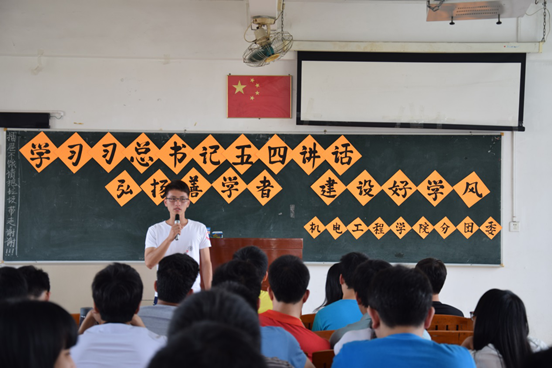 主题学习会上,全体师生集体学习了习近平总书记在北京大学师生座谈会上的讲话。之后,几位学生代表和老师们分别谈了学习体会。老师还和教导同学们要做一名“善学者”,做一名引导同学建设好学风的干部。会后有些同学发表了自己的学习感想,制冷141班、工业设计141、电气143班三个班的班长还分别在会上分享了他们班近期的“无手机课堂”建设情况、班风和学风建设情况,还给我们分享了一些管理班集体的心得体会,等。