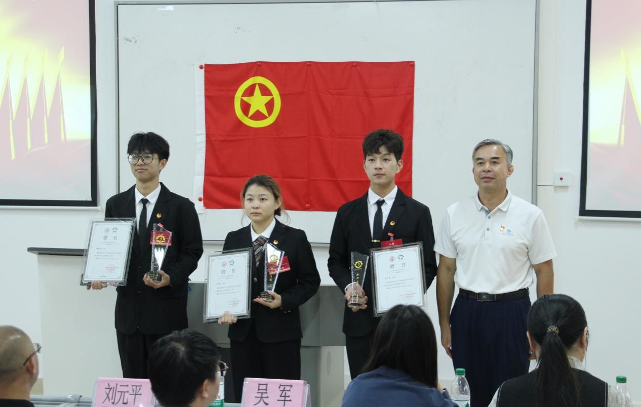 领导和老师们向机电工程学院第六届学生会骨干颁发聘书和纪念品。