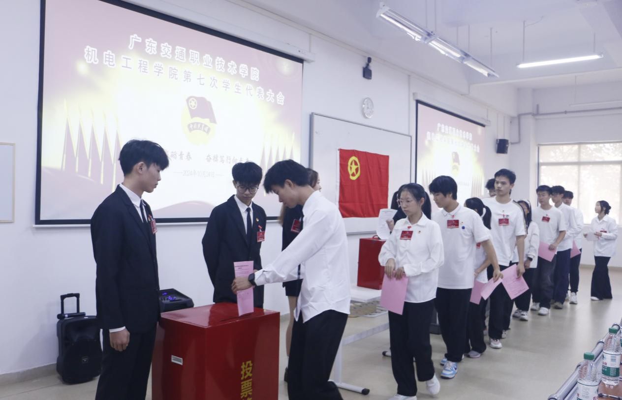 10月24日下午,机电工程学院第七次学生代表大会在创新楼102顺利举行。机电工程学院党委书记江能兴、党委副书记刘元平,机电工程学院团委书记谭文海、团委副书记甘小丹,广东交通职业技术学院学生会主席团成员陈虹妆,组织员、辅导员、全体学生代表出席本次大会。
