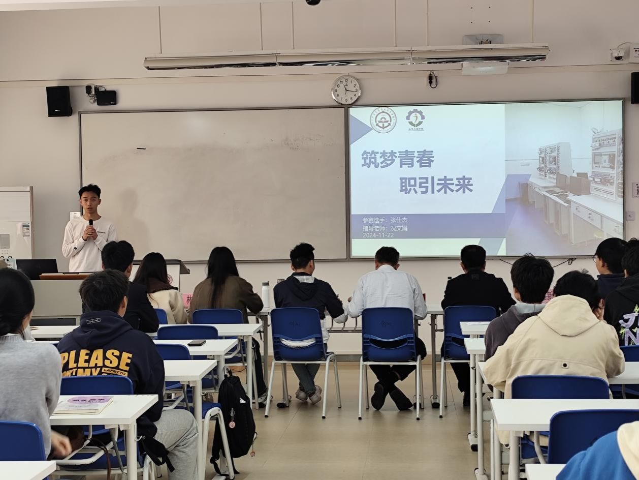 经过初赛的层层选拔,共有10位选手脱颖而出,晋级本次决赛。决赛分为个人展示和现场答辩两个环节。在个人展示环节,选手们通过精美的 PPT、生动的演讲,从自我认知、职业认知、职业目标、实施计划以及评估与调整等方面,详细阐述了自己的职业规划。在现场答辩环节,评委们针对选手的职业规划提出了一系列具有针对性、建设性的问题。选手们冷静思考、从容作答,展现出了扎实的专业知识和良好的应变能力,也展示了积极向上的精神风貌和勇于追梦的决心。