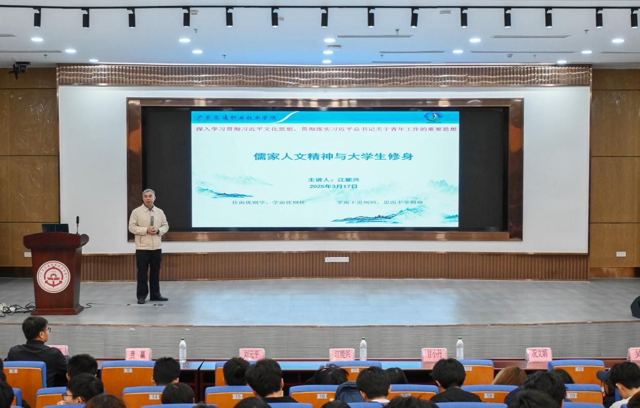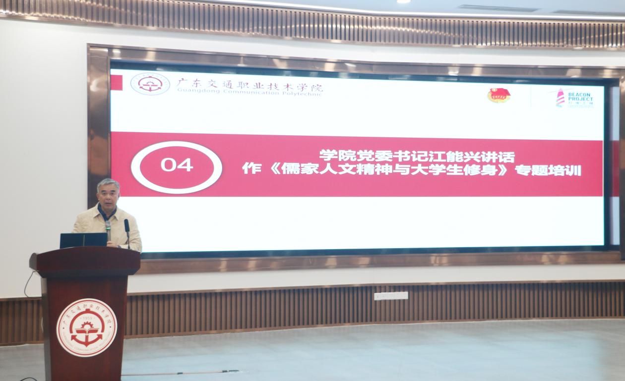 第一课上,江能兴作《儒家人文精神与大学生修身》专题培训。培训内容围绕习近平总书记关于中华优秀传统文化的重要论述;习近平总书记谈人文精神、谈大学生修身;读经典、启智慧,了解儒家人文精神;学生干部要“知行合一”,在“事上磨炼”中修身等方面深刻阐释中华优秀传统文化对自身建设,内涵提升的重要性,引导青年学生骨干要深入学习中华优秀传统文化,坚定理想信念,筑牢思想根基,强化使命担当。坚持用习近平新时代中国特色社会主义思想武装头脑、指导工作,在文化自信的坚定脚步中“培根、铸魂、逐梦”,努力提升个人综合素质,为学院学生工作高质量发展贡献青春力量。