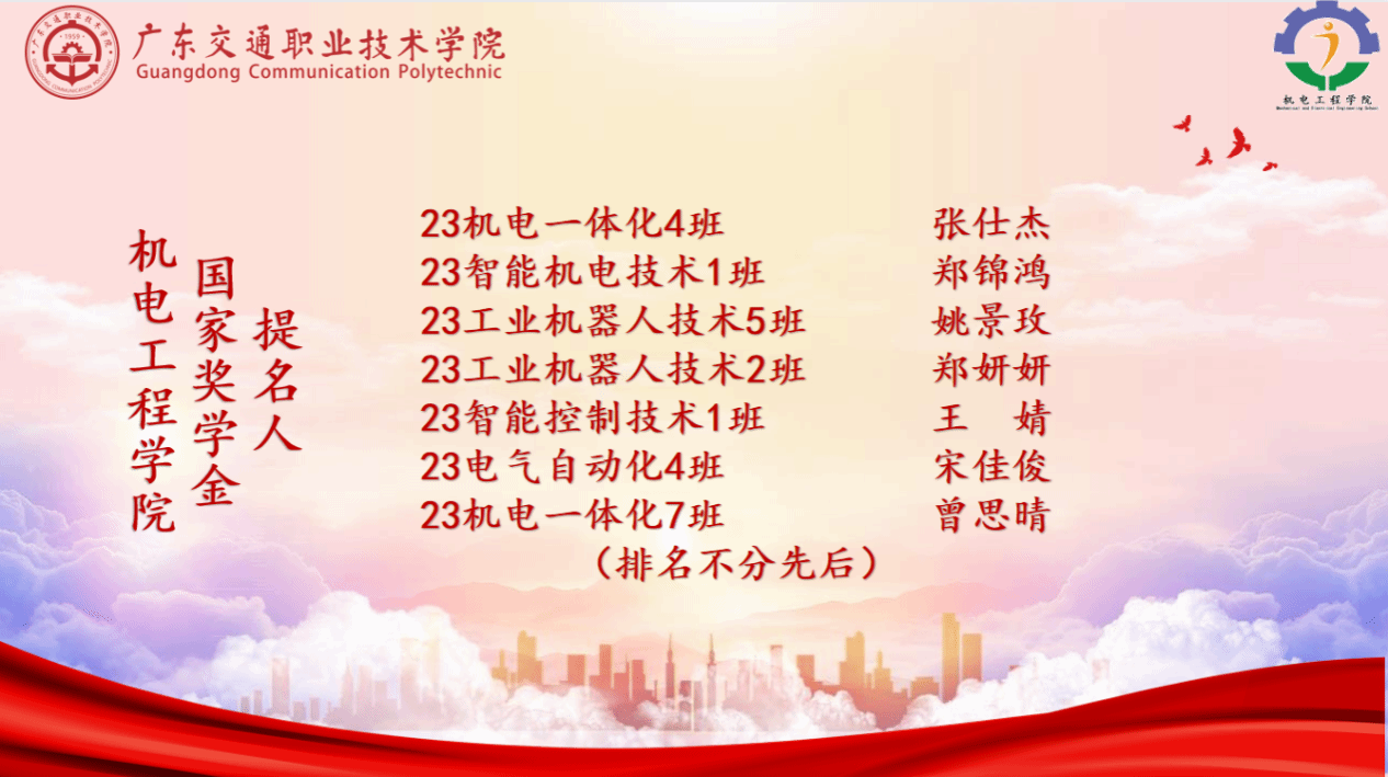 国家奖学金是由我国中央政府出资设立,为激励普通本科高校、高等职业学校和高等专科学校学生勤奋学习、努力进取,在德、智、体、美、劳等方面全面发展,用来奖励特别优秀学生级别最高的国家级奖学金。机电工程学院党委书记江能兴勉励同学们要感恩党、爱祖国,要珍惜荣誉、肩负责任和勇于担当。他希望同学们在答辩中展现真实自我,分享成长感悟,以榜样的力量带动身边同学共同进步,在青春这片沃土上绽放更绚丽的光彩。