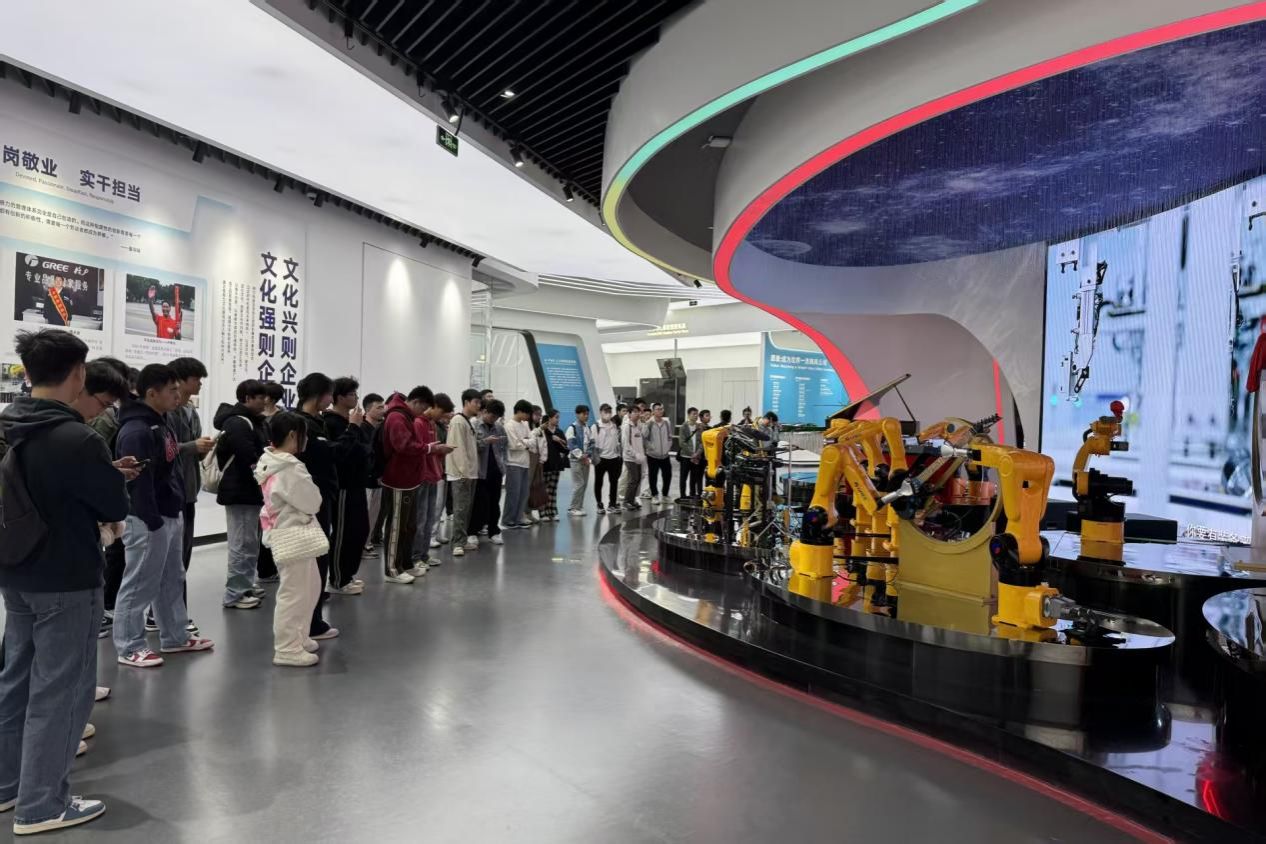 机电师生一行参观了格力电器总部展厅。在工作人员的专业讲解下,大家系统了解了格力电器的发展历程、核心技术以及近年来在智能家居、工业自动化、绿色能源等领域的创新成果。展厅内陈列的各类高端产品与智能化解决方案,充分展现了格力作为行业领军企业的科技实力与品牌魅力,给在场师生留下了深刻印象。