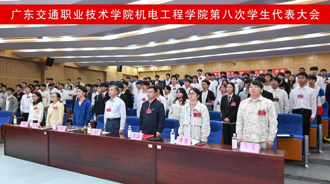 大会在雄壮的国歌中拉开了帷幕。大会首先通过了机电工程学院第八次学生代表大会筹备工作报告以及代表资格审查报告。广东交通职业技术学院学生会主席团成员黄佩珊同学宣读学院《关于同意召开机电工程学院第八次学生代表大会的批复》。谭文海向大会致开幕词,希望学院学生会始终把自身建设发展同时代紧密相连,始终坚持全心全意服务同学为宗旨,团结引领广大同学紧紧围绕学院建设发展大局,强化政治引领,践行服务宗旨,勇于自我革新,坚定不移做改革的促进派和实干家,以奋斗之青春,担时代之重任。