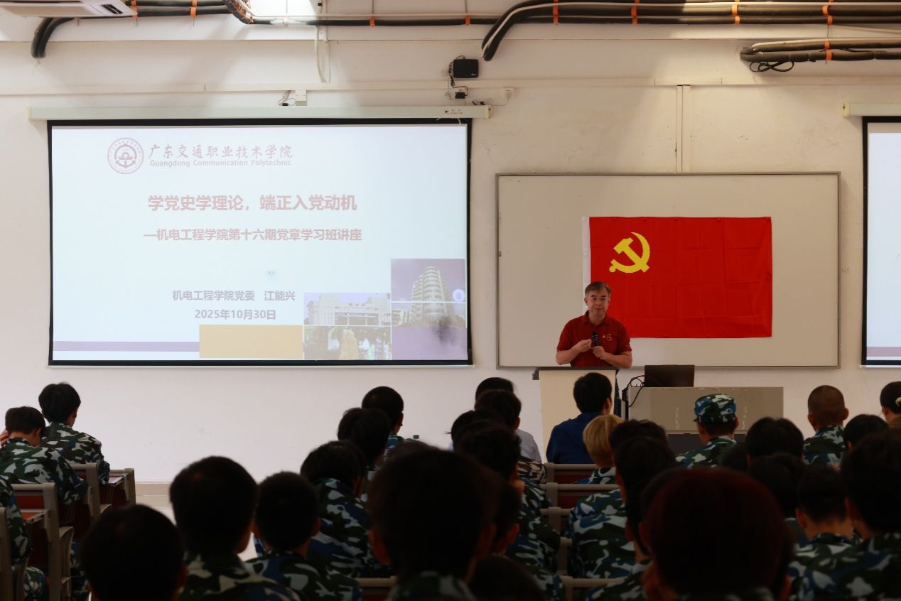 10月30日下午,江能兴在清远校区笃实楼101室讲授第一堂党课《学党史学理论,端正入党动机》。他从党的百年奋斗历程出发,系统阐述了党的二十届四中全会精神的核心要义,深入解读了全会提出的重大理论观点和战略部署。在阐述全会精神时,他特别强调了坚持和加强党的全面领导这个根本原则,引导学员们深刻认识中国特色社会主义最本质的特征是中国共产党的领导,中国特色社会主义制度的最大优势是中国共产党的领导,这是党和国家的根本所在、命脉所在,是全国各族人民的利益所系、命运所系。