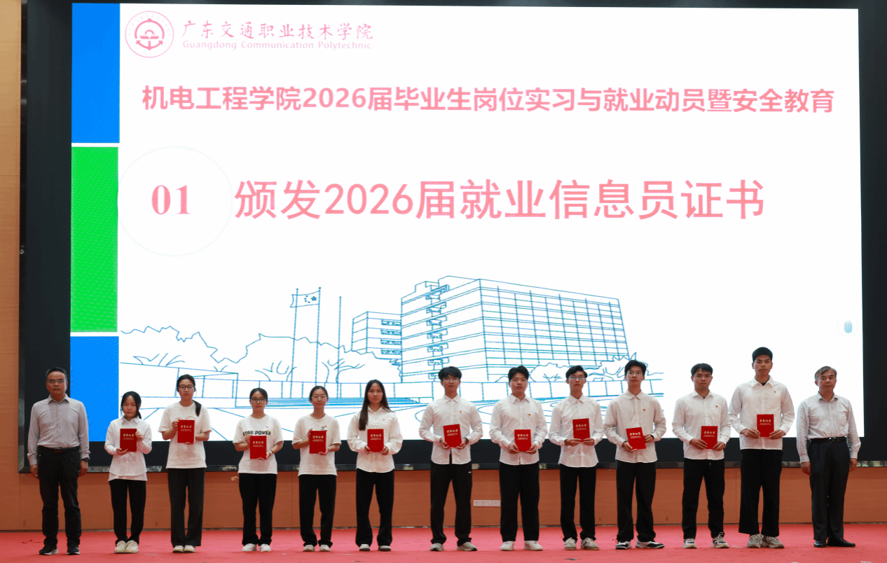机电工程学院党委书记江能兴、院长潘伟荣为2026届就业信息员颁发聘书。