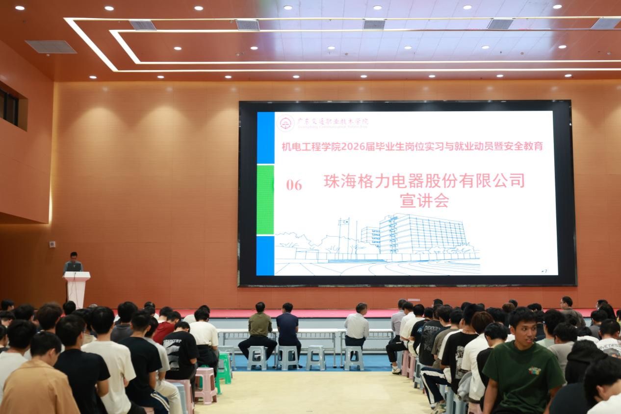 11月10日,机电工程学院在清远校区体育馆一楼举行2026届毕业生岗位实习与就业动员暨安全教育会。机电工程学院领导班子、专业负责人、带班辅导员、班主任、毕业设计指导老师、2026届全体毕业生等出席本次会议。珠海市香洲区人力资源开发服务中心副主任刘冬、珠海格力电器股份有限公司人力资源部部长符学美等参加本次会议。