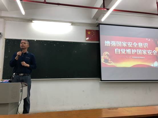首先,殷副处长发表讲话,向同学们详细阐述了国家安全的重要性,指出在政治因素、国际因素等各种因素的影响下,高校校园广大师生需要全面提高国家安全意识,国家安全重于泰山!同时,殷副处长号召在座的每一位同学在“4.15全民国家安全教育日”即将来临之际,深入学习“国家安全”的相关知识,为祖国的发展和安全做力所能及的贡献,成为维护国家安全最强有力的后备力量。