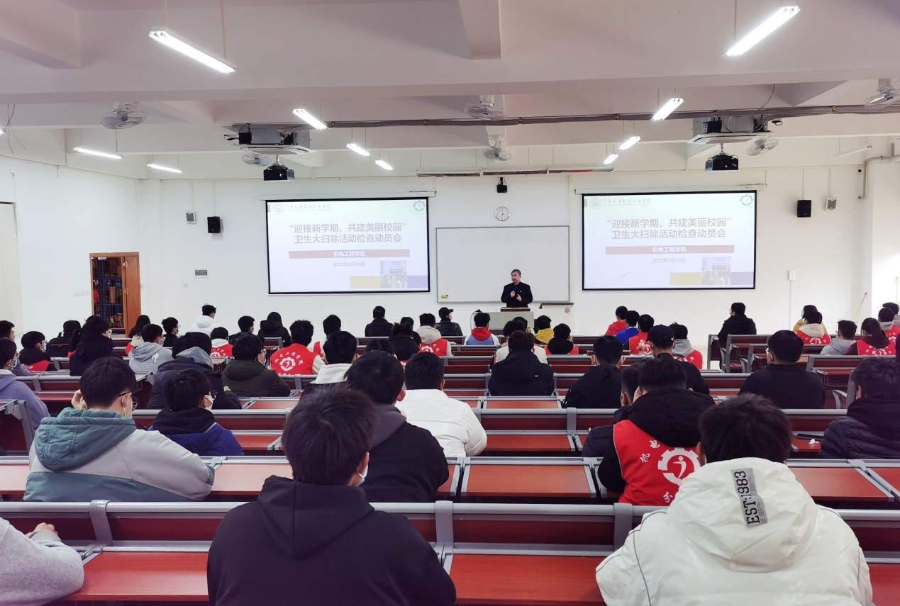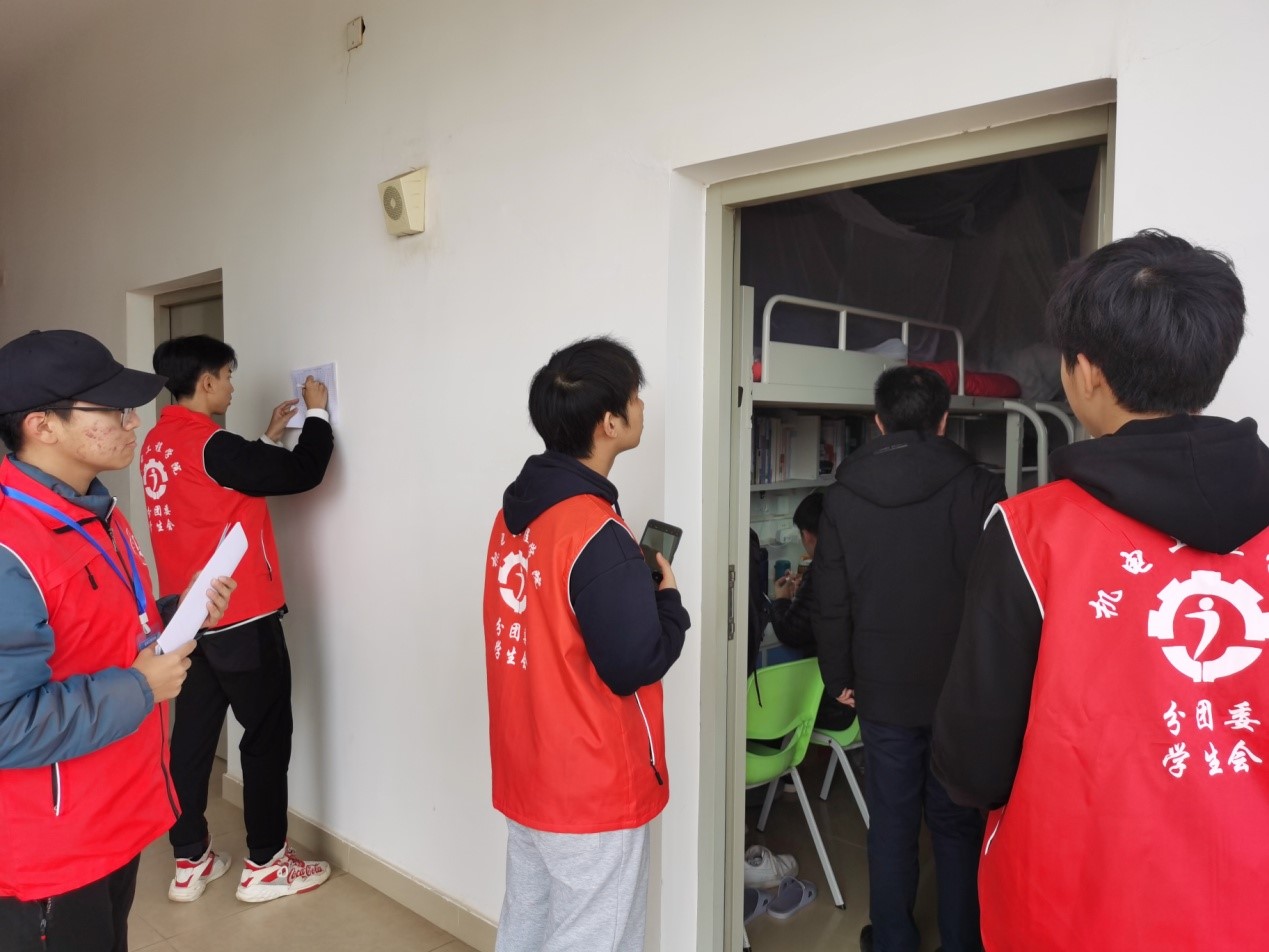 在宿舍检查前,学院党委江能兴书记对参与检查活动的党员、入党积极分子、学生干部作动员讲话。强调要以“迎接新学期、共建美丽校园”宿舍大扫除活动为契机,营造健康舒适的宿舍环境,教育引导广大同学持续深入开展爱国卫生教育,持续建评“两善一星”,优化学风建设,自觉践行社会主义核心价值观,扎实做好疫情常态化防控工作,为学院建设发展增光添彩,努力成为德智体美劳全面发展的社会主义建设者和接班人。