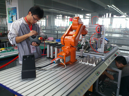 机电一体化技能竞赛暨全国可编程序控制系统设计师职业技能大赛,由中国机械工业联合会指导,广东省人力资源和社会保障厅主办,广东省职业技能鉴定指导中心、广东省工业工会委员会、广东省自动化与信息技术转移中心承办的一项大型赛事。本届大赛学生组由30多所职业技术院校、技工学校、技师学院参赛,大赛内容分为自动化生产线安装与调试和ABB机器人安装与调试。