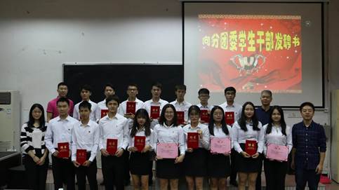 会上,领导、老师们向2017-2018学年分团委、学生会优秀部门进行颁奖并给2017-2018学年分团委、学生会主要干部颁发了聘书。会议还通过视频展播的方式回顾了上一年分团委、学生会的主要工作。