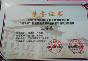 机电工程学院院长潘伟荣教授,张毅和谭华旭老师带领机电一体化197班卢景鹏和周嘉洋两位同学参加比赛,经过四个小时紧张激烈的技术比拼,荣获本次比赛三等奖。