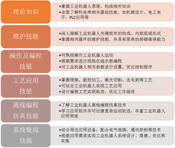 专业人才技能要素:工业机器人技术专业人才需要六大技能要素,如图1所示: