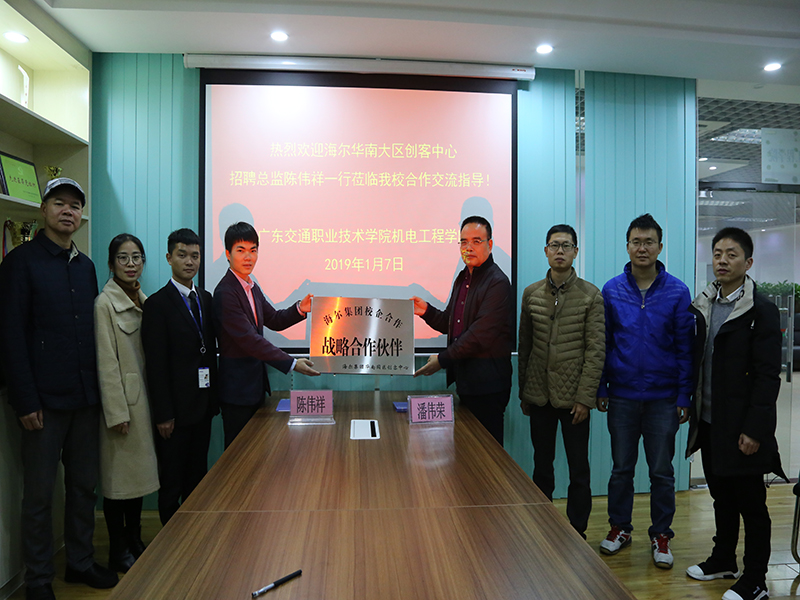 近日,海尔&广东交通职业技术学院战略合作框架协议签约仪式在机电学院会议室隆重举行,机电学院院长潘伟荣主持会议,党总支书记邓海荣及专业骨干教师、海尔集团华南园区创客中心人力资源总监陈伟祥及人力资源经理徐晓彭等校企双方领导出席了签约仪式。