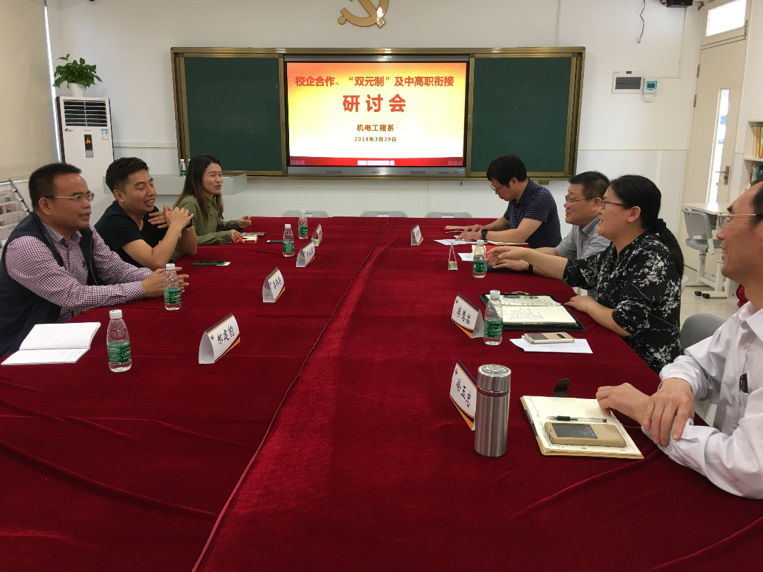 2018年3月29日,我院院长潘伟荣、郝建豹等教师前往深圳市第三职业技术学校与深圳市创维数字技术有限公司洽谈双元制合作事宜。