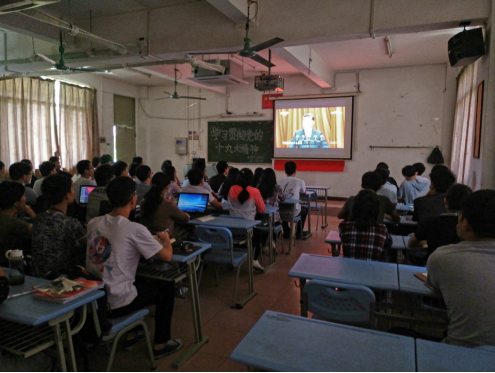 秋色绚烂,山河醉人。在全国庆祝中国共产党第十九次全国代表大会胜利召开之际,机电工程学院党总支为了让全体学生党员深入了解党的十九大精神,不忘初心,坚定理想信念,永远跟党走,于2017年10月26日召开了学生党员集体学习,党总支邓海荣书记主持了会议。