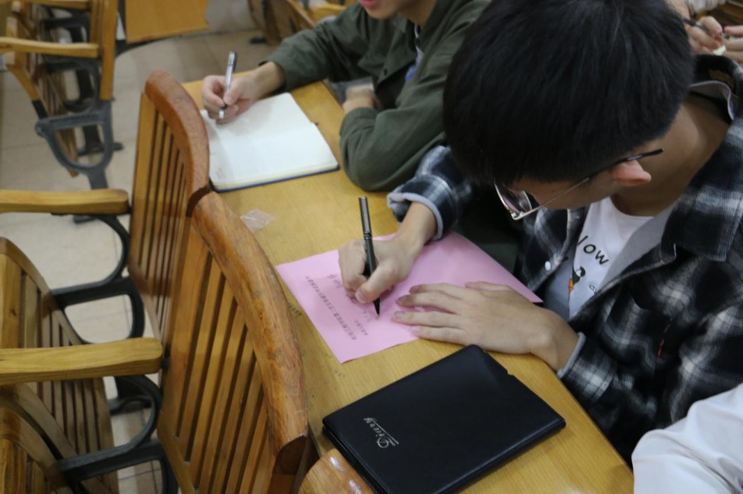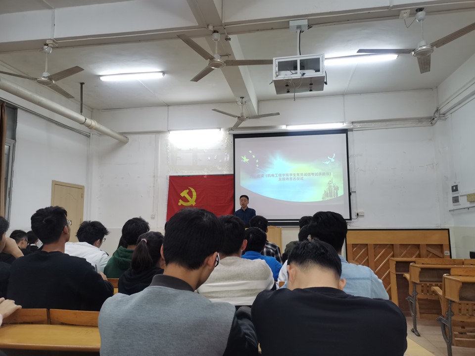 宣誓结束后,学生支部书记王景添老师发表讲话,王老师对新发展的党员提出了几点要求,希望他们能加强理论学习,加强党性修养;提高自身素质,提升科学文化素养;在学生中能起模范带头作用,严格要求自己,诚信做人,诚信考试。最后,与会党员进行期末诚信考试现场签字仪式。