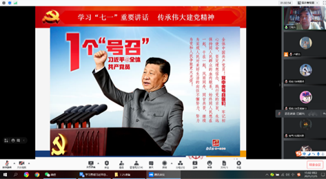 专题党课后,分支部进行了学习贯彻习近平总书记“七一”重要讲话精神心得交流。教师党员王景添老师发言:“百年奋斗路,不忘初心使命,弘扬伟大建党精神!做为一名共产党员,我们一定要从党的百年历史中汲取智慧力量,要从我们脚下这片革命土地上吸收深厚养分,让理想在创新创造中升华,努力谱写全面建设社会主义现代化国家的历史画卷!”