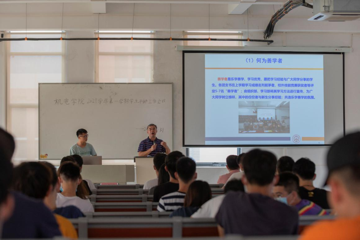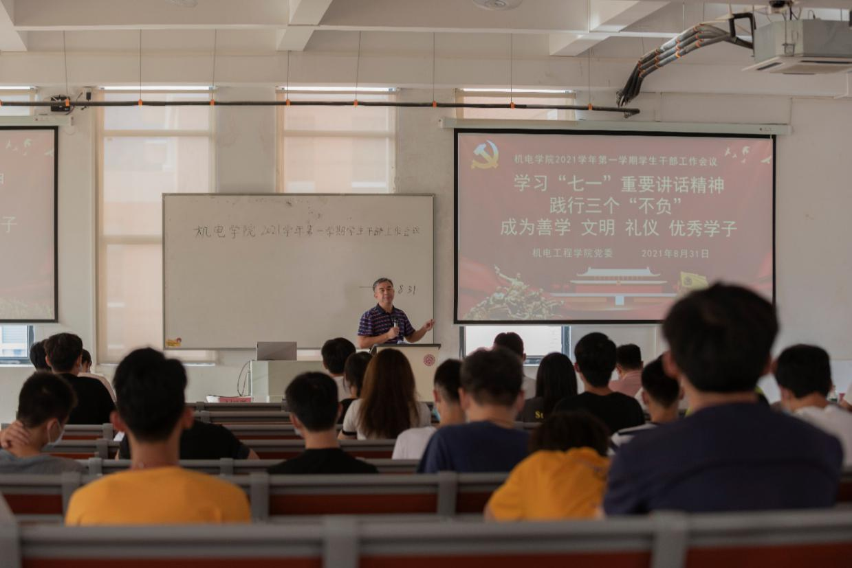 会议认真学习了习近平总书记在庆祝中国共产党成立100周年大会上的重要讲话精神,机电工程学院党委书记江能兴带领师生深入领会了三个“不负”的重要意义,同时就在校学生如何践行三个“不负”讲了一系列的具体举措。