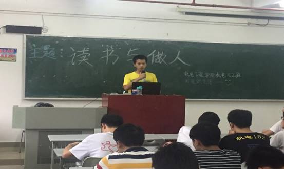 为迎接机电文化节的到来,在10月,我们学院组织各班开展以“读书与做人”为话题的演讲比赛,而我们机电152班也积极响应学院的召,在本班刮起了一股演讲风,同学们都积极参与,得到了一定的锻炼。其中,林锦聪同学一路过关斩将,顺利进入了总决赛,最后获得了学院演讲比赛的优秀奖。