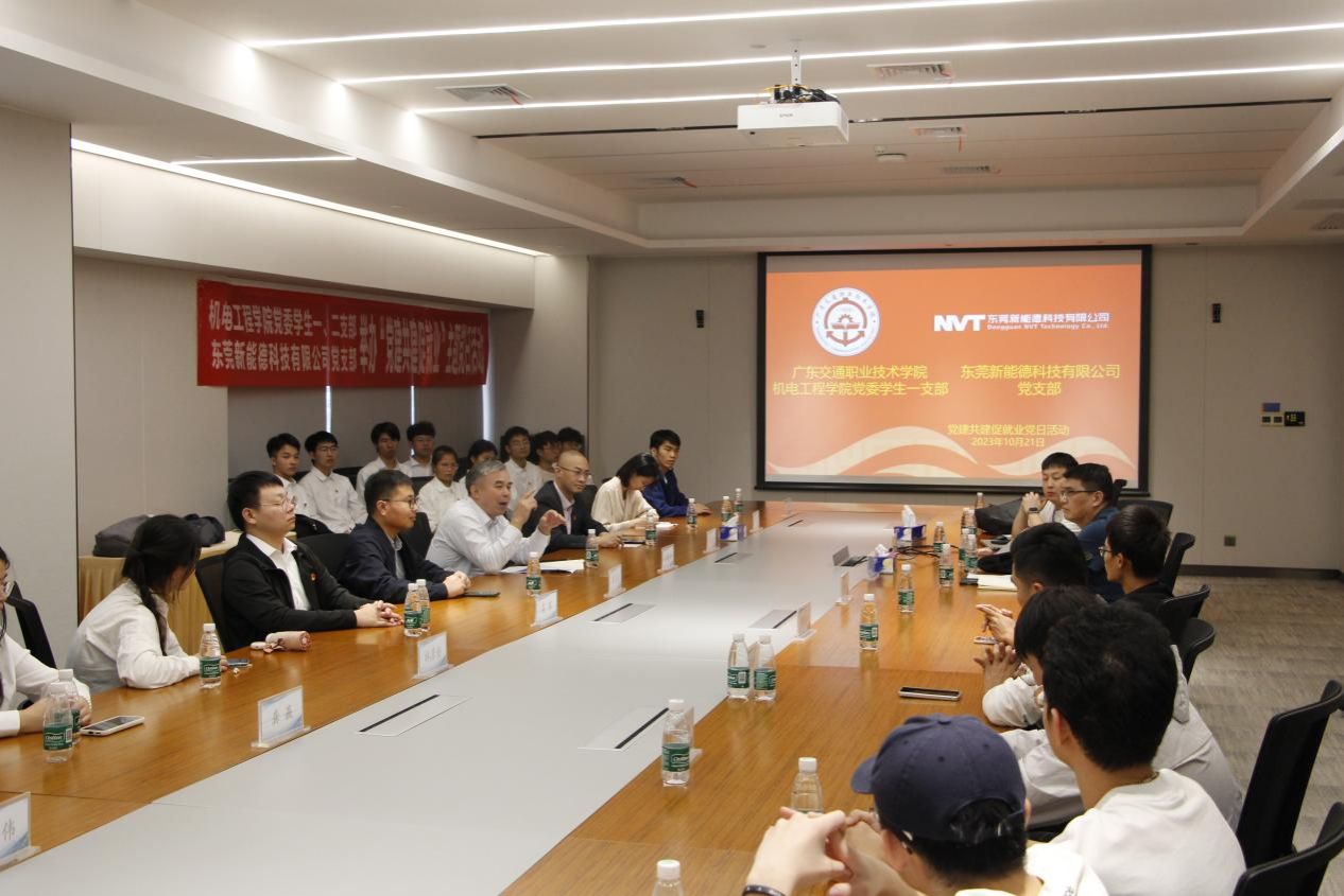 东莞新能德科技有限公司是一家致力于锂电池研发和制造的国家级高新技术企业、隶属全球排名第一的聚合物锂离子电池供应商新能源集团。座谈会上,校企双方就如何在校企合作的基础上深化党建合作进行了讨论,围绕人才培养、学生就业实习等方面进行了交流。会后,师生党员在部门负责人的带领下参观了公司展厅、生产车间等,深入了解东莞新能德的发展历程、企业文化与科技创新成果等。