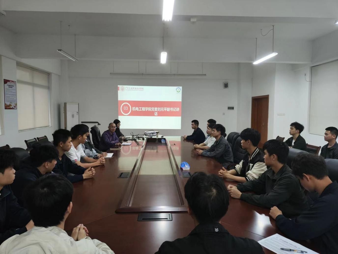 4月7日,机电工程学院在创新楼302召开退伍学生座谈会。机电工程学院党委副书记刘元平,辅导员吴军、龚赢、黄建荣,全体退伍学生等参加座谈会。座谈会由吴军主持。