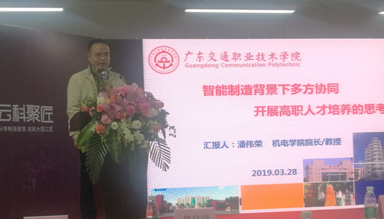 此次会议上机电工程学院院长潘伟荣教授发表了“智能制造背景下多方协同开展高职人才培养的思考”的主题演讲,获得企业及高校同行好评。