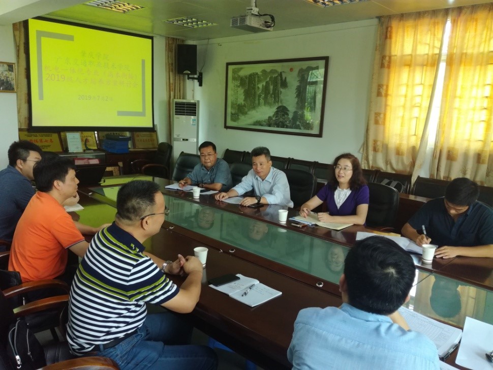7月2日,肇庆学院机械与汽车工程学院党委书记田华、副院长兼教师党支部书记李剑英、副院长冯桑、机械系主任董克权等领导一行6人莅临我校,对2019级机电一体化技术专业“3+2”高本协同培养人才专题进行研讨交流活动。机电工程学院院长兼党总支副书记潘伟荣、机电一体化技术专业负责人罗力渊、专任教师翟振坤等作为机电学院代表参与了交流研讨。