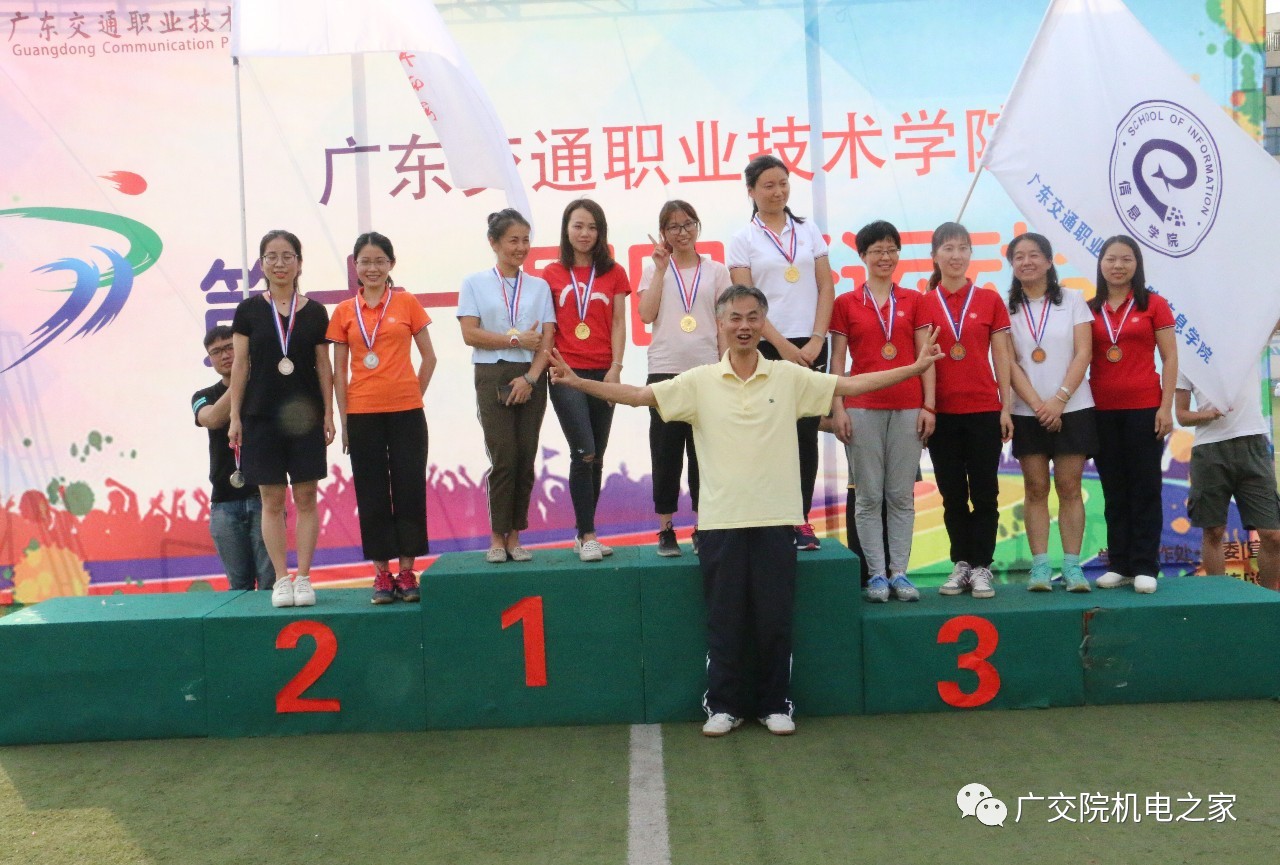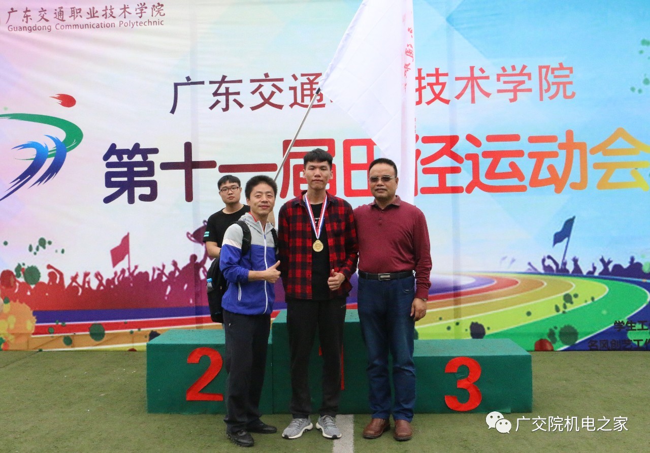 在机电健儿们的拼搏努力下,我院在本届校运会中取得非常喜人的成绩! 其中郭新老师夺得了教职工女子跳远冠军、教职工女子100米季军;蔡丹妮老师荣获教职工女子铅球亚军;杨伟莹老师、郭新老师、蔡丹妮老师勇夺教职工女子4*100米接力亚军;张镇澎同学男子1500米冠军、李舒婷同学女子1500米季军,陈卓尧、江岚坤、肖铸家和张镇澎获得男子4*400米亚军等,我院荣获团体总分三等奖。