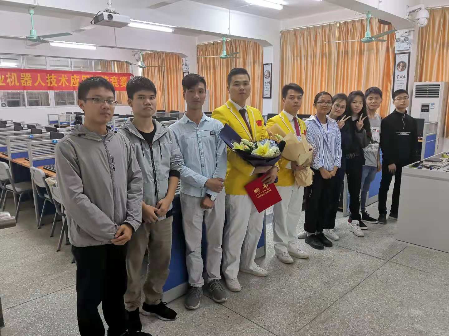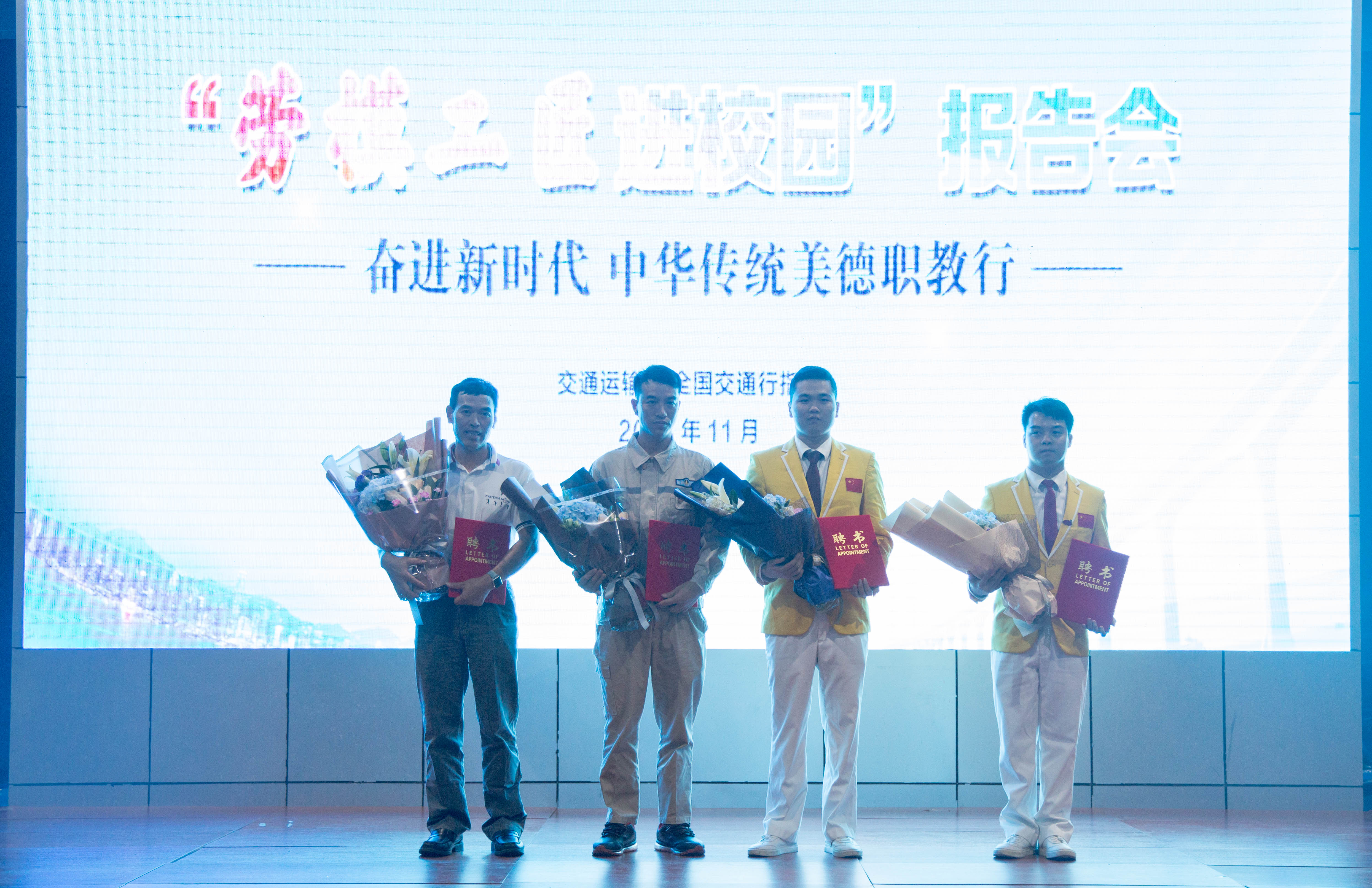报告会结束后,张俊平院长向劳模工匠颁发了客座教授、客座讲师聘书。学生代表怀着崇敬的心情为劳模工匠们献上鲜花。