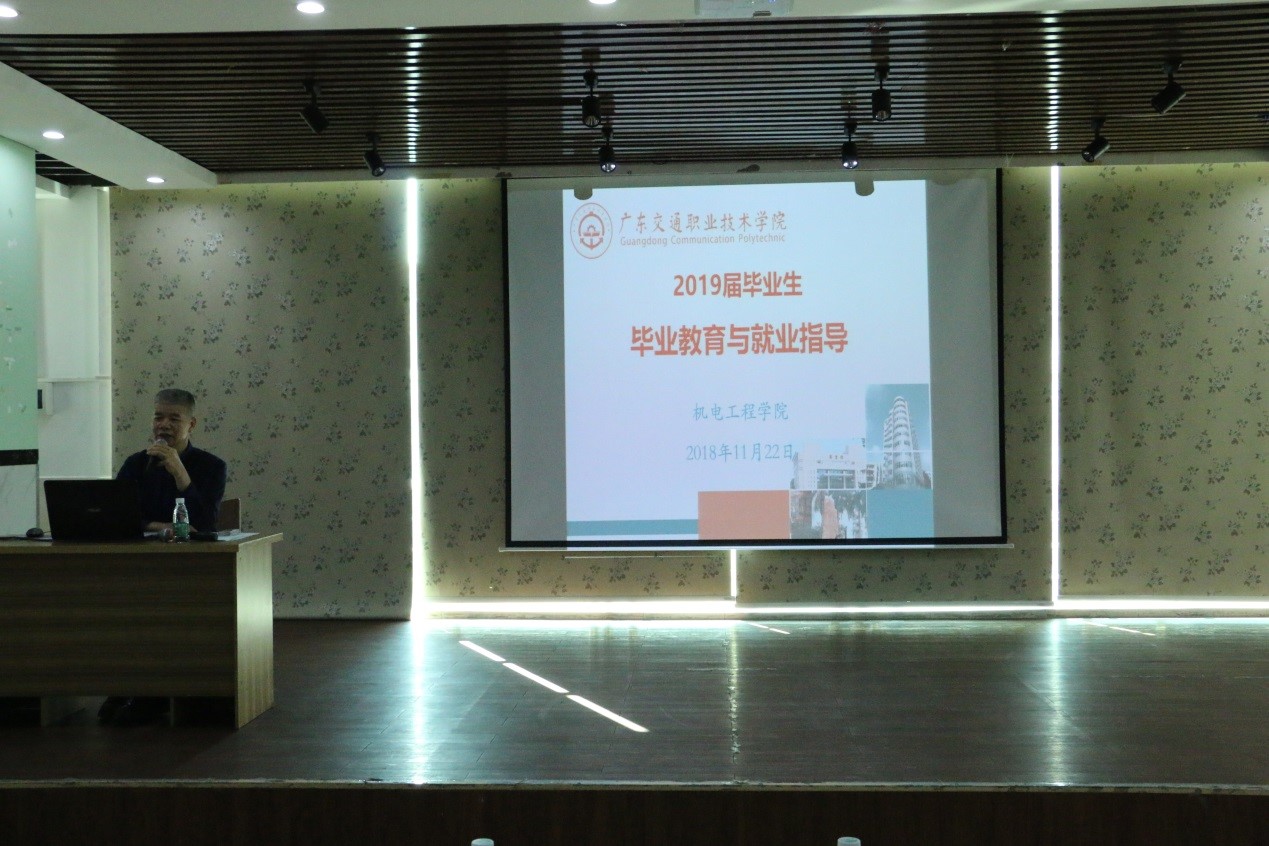 2018年11月22号下午,机电工程学院于九号楼三楼大厅召开了2019届毕业生求职就业指导与实习安全教育大会,大会由邓海荣书记主讲,全体辅导员老师以及机电工程学院2019届毕业生300多人出席了本次大会。