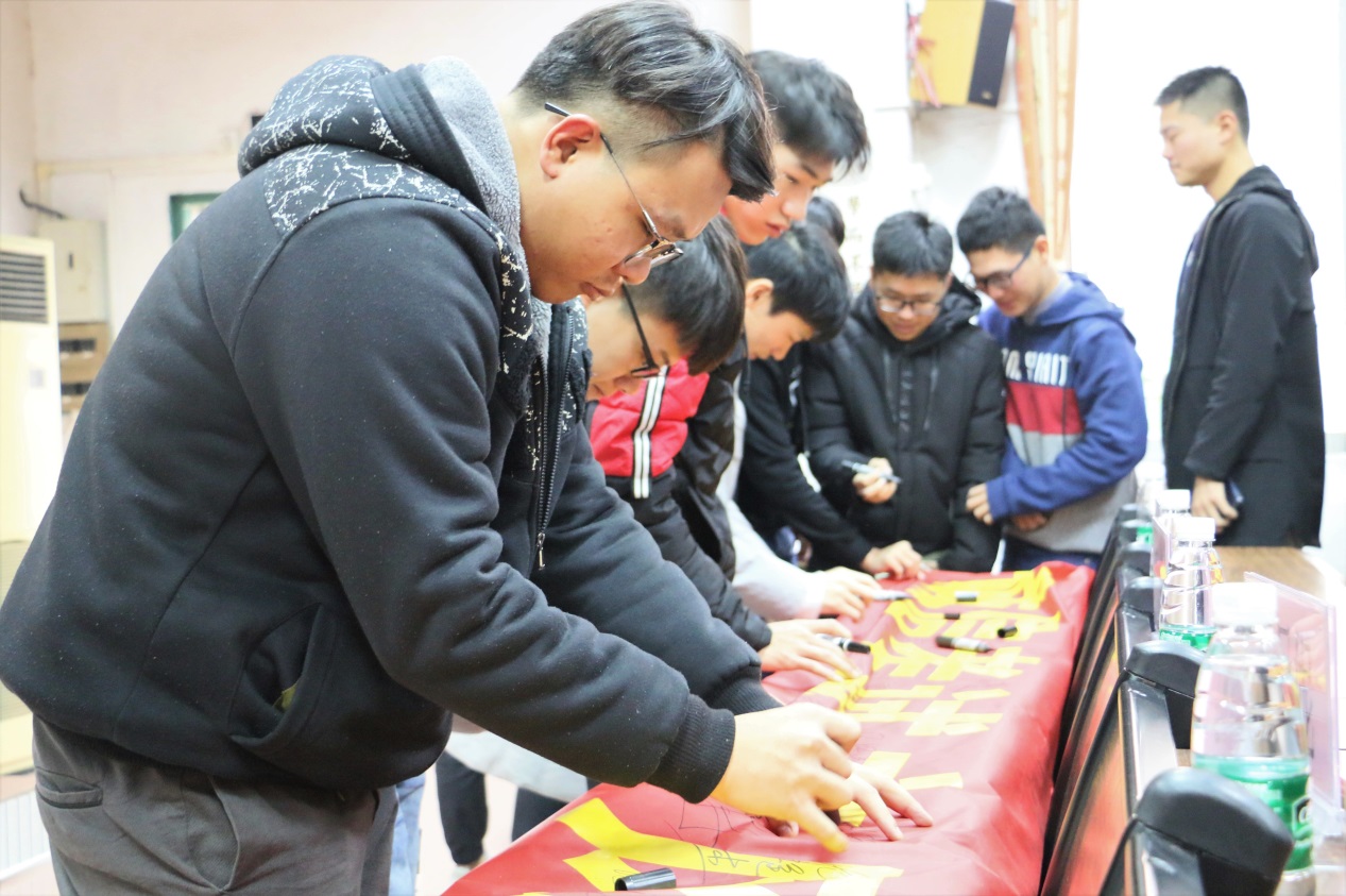 最后,由邓海荣书记做诚信考试和假期安全动员的讲话,各班团支书在会上代表全班同学进行诚信考试在横幅上进行签名,许下“诚信考试”的庄重诺言!