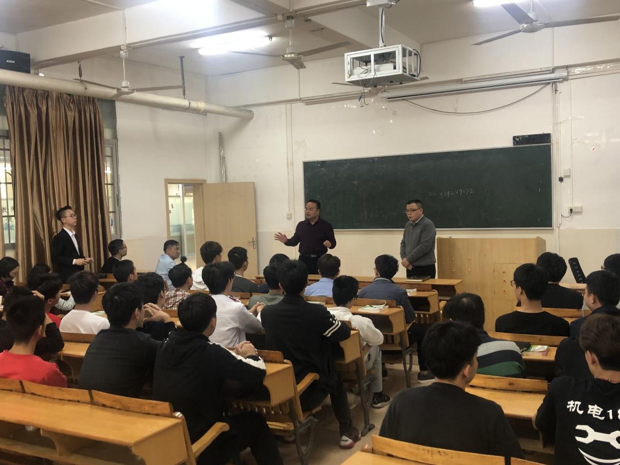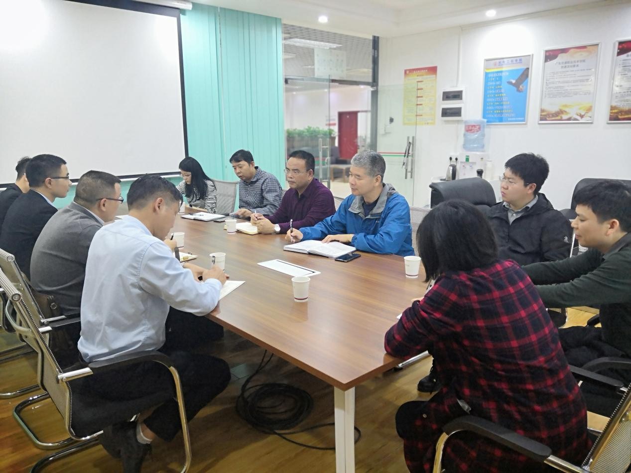 2019年3月12日,肇庆市现代筑美家居有限公司人事行政中心总经理周辉和设备动力部总监邓硕一行四人莅临我院,看望合作共建的2018级机电一体化技术现代学徒制学生,洽谈如何办好试点班事宜,机电工程学院院长潘伟荣、党总支书记邓海荣及相关专业骨干教师参加了座谈会。