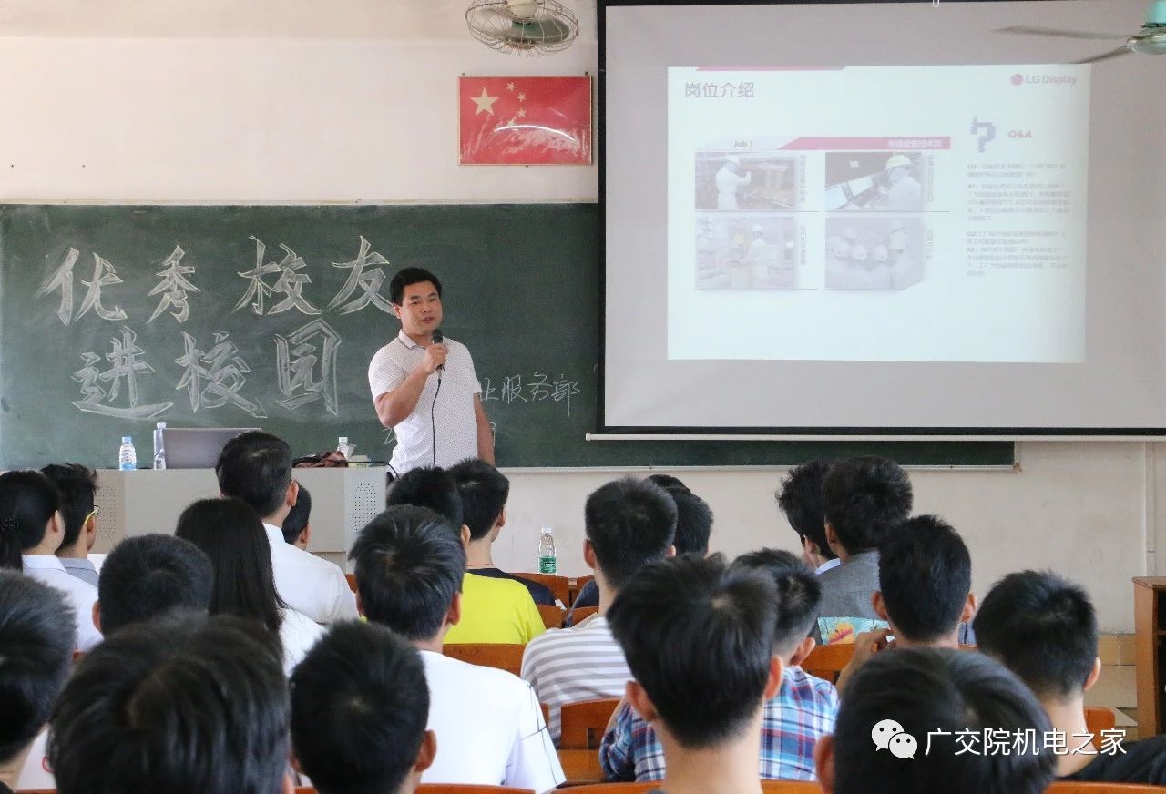 为了促进学生就业,更好地拓宽应届毕业生的就业信息渠道,提高学生就业率,2018年10月29日下午2:00,机电工程学院于16#605举行了乐金显示中国有限公司专场招聘会,乐金显示中国有限公司的招聘主管吴先生、车间主管吴班长、邓海荣书记、王景添老师出席了本次招聘会。