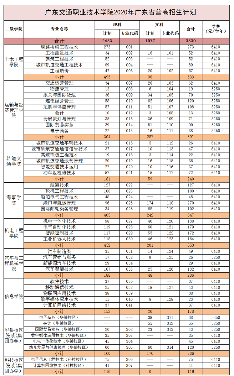 广东交通职业技术学院2020年夏季普高招生计划网址: