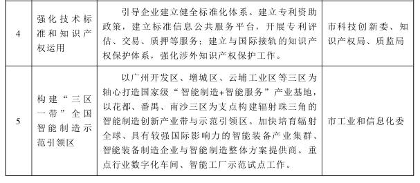 按照“资源集聚—平台集聚—企业集聚—智慧集群”的原则,优化智能制造产业布局,以广州开发区、增城区、云埔工业区(黄埔)等三区为轴心打造国家级“智能制造+智能服务”产业基地,以花都、番禺、南沙三区为支点构建辐射珠三角的智能制造创新产业带与示范引领区。加快培育辐射全球、具有较强国际影响力的智能装备产业集群、智能装备制造企业与智能制造整体方案提供商。